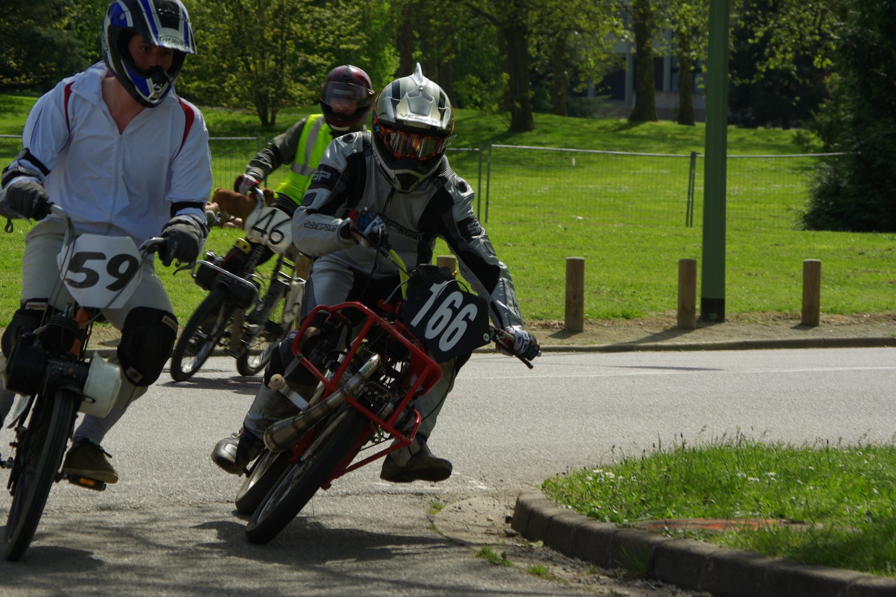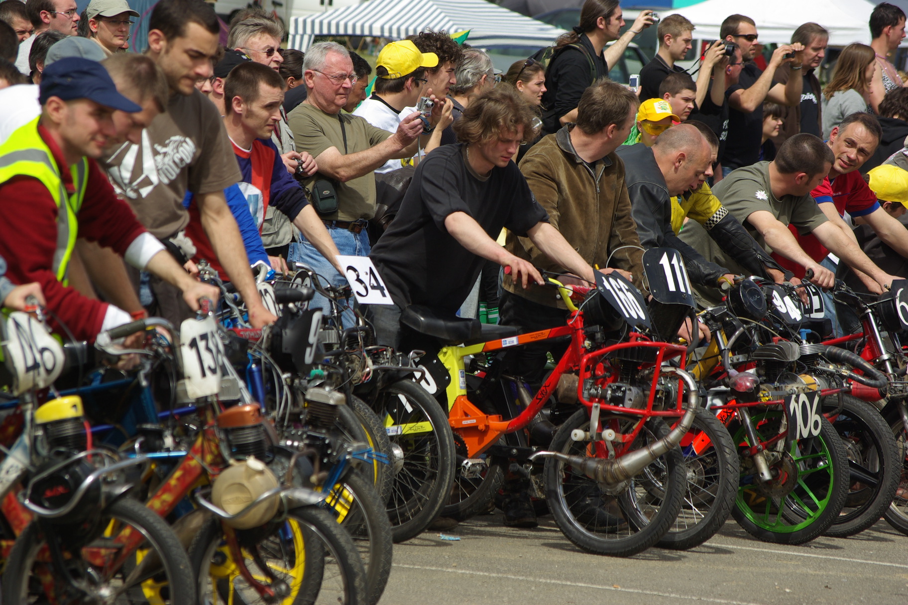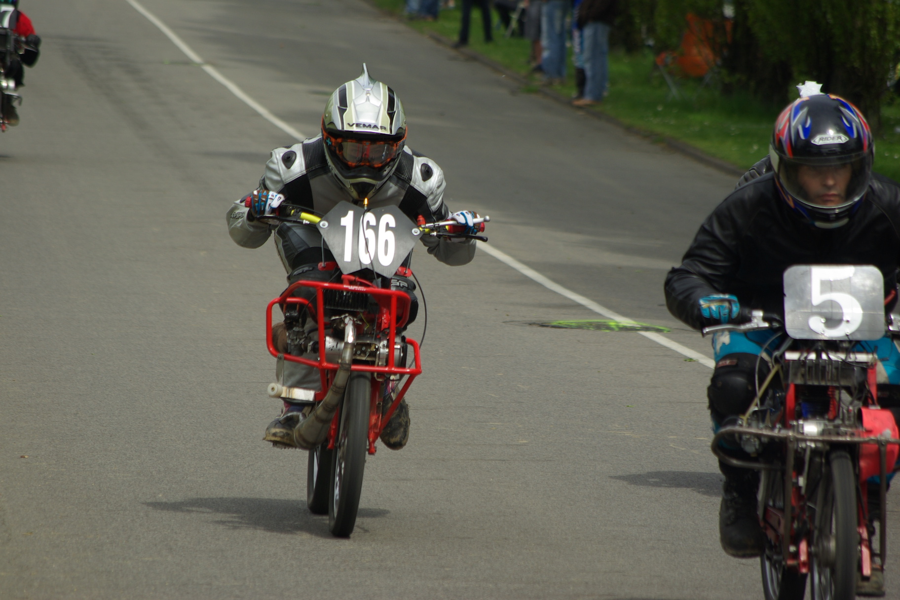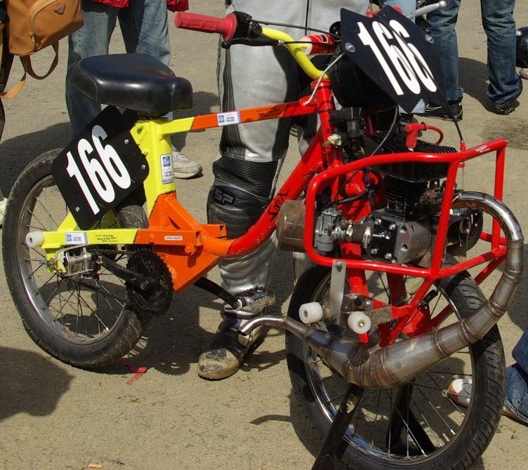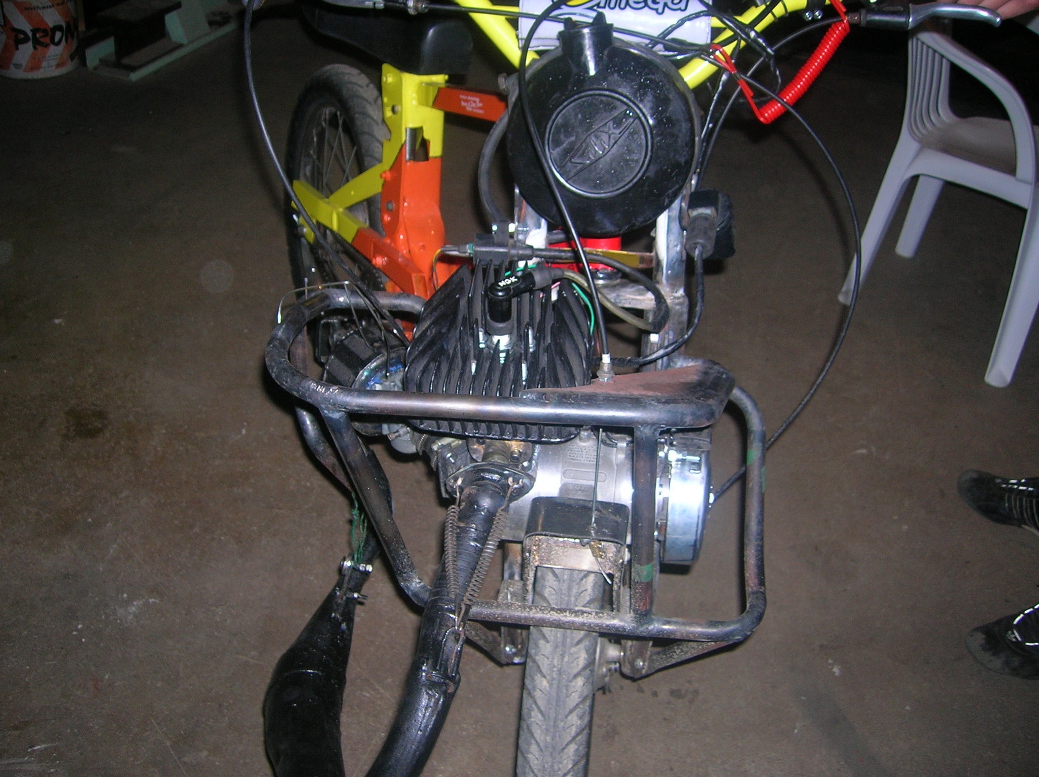 solex proto, sur base 1700, cylindre origine 3 trsf liquide, diagrammes 167 /118 ou 175/124, culasse minarelli record, carbu 19 D.O, boite air karting, allumage 103 elect, carters maison, pneus duro semi slicks, cadre rigide...