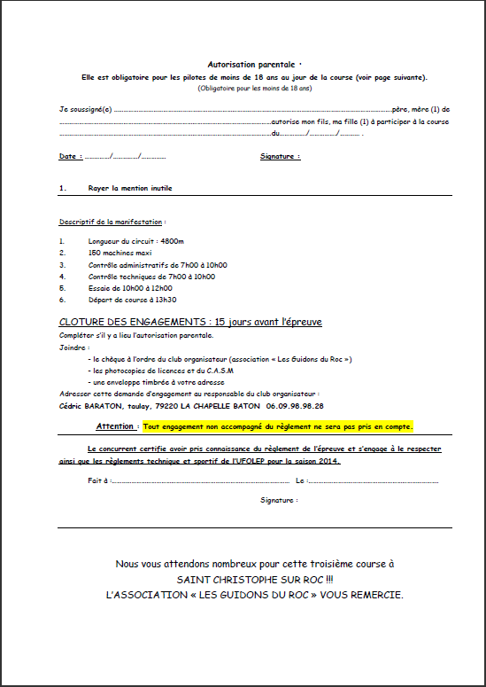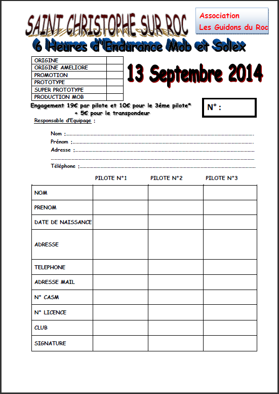 Bonjour à tous, je confirme bien l' endurance 6h de st Christophe-sur-roc 79, organisé par le club les guidon du roc. Essai: 10h à 12h, départ: 13h, arrivé 19h. Circuit de 4800 mètre, parcoure très technique beaucoup de courbes et 3 virage qui sont plus qu'a l' équerre, une très grosse décente et un...