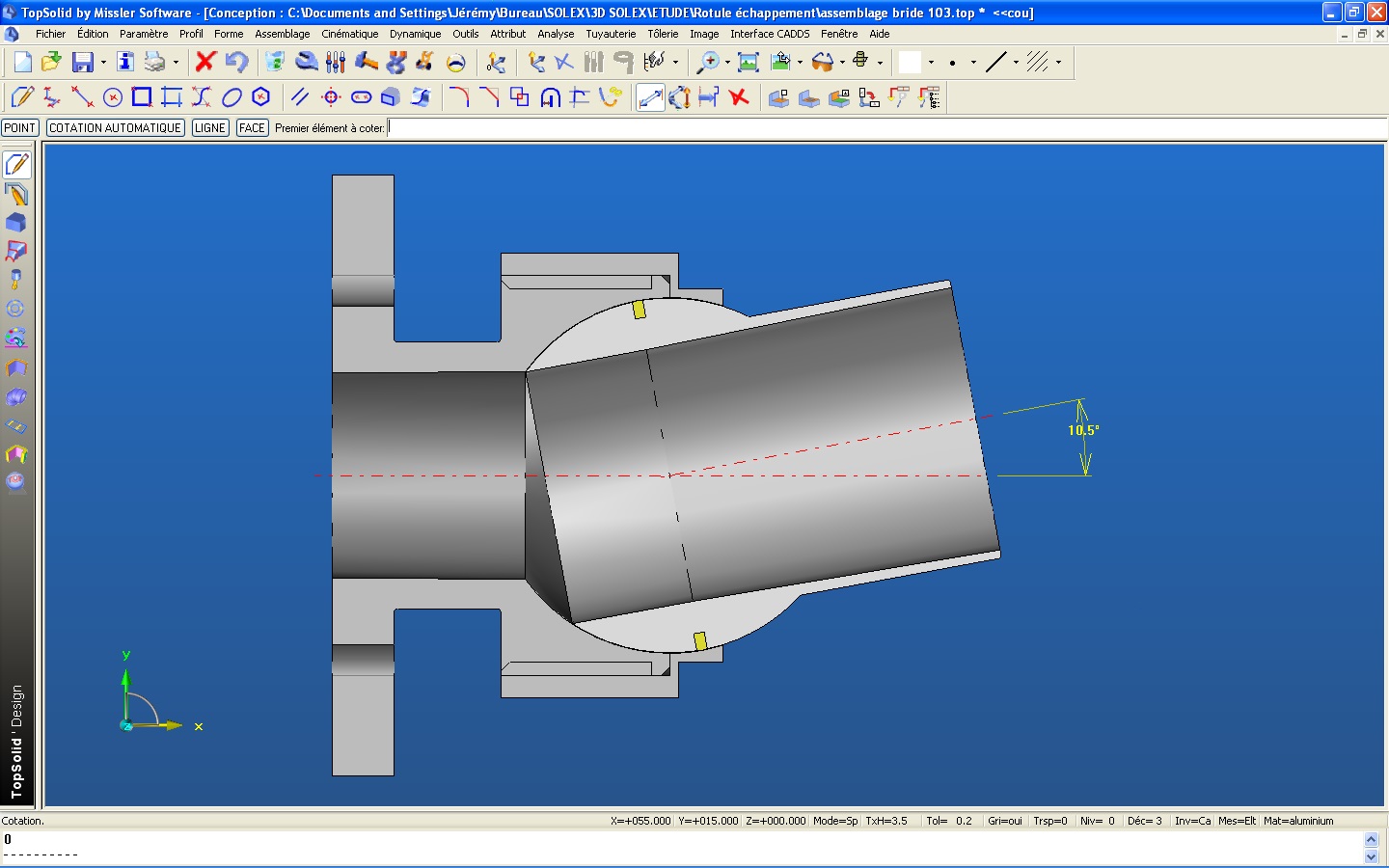 - j'ai intégré une conicité progressive dans l'ensemble, la partie fixé au cylindre à une conicité de 1° et la partie emboité au pot à une conicité de 2°
