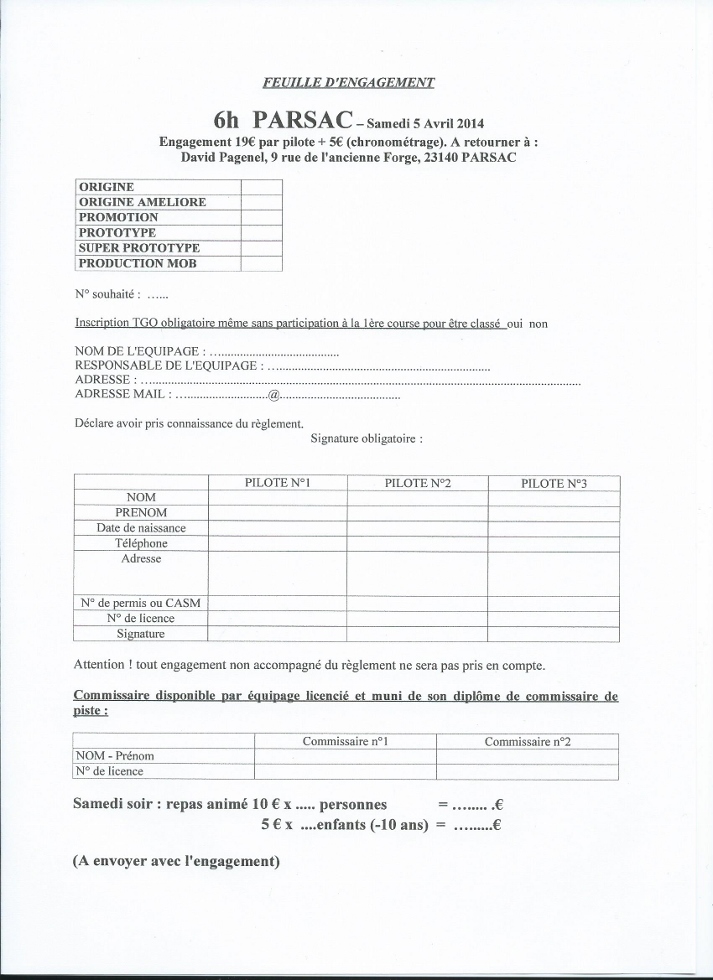 merci yannick l ordre pour le cheque d engagement est club communal de parsac , pour tous renseignement et pour toutes demande de licence me contacter au 06 73 90 31 70