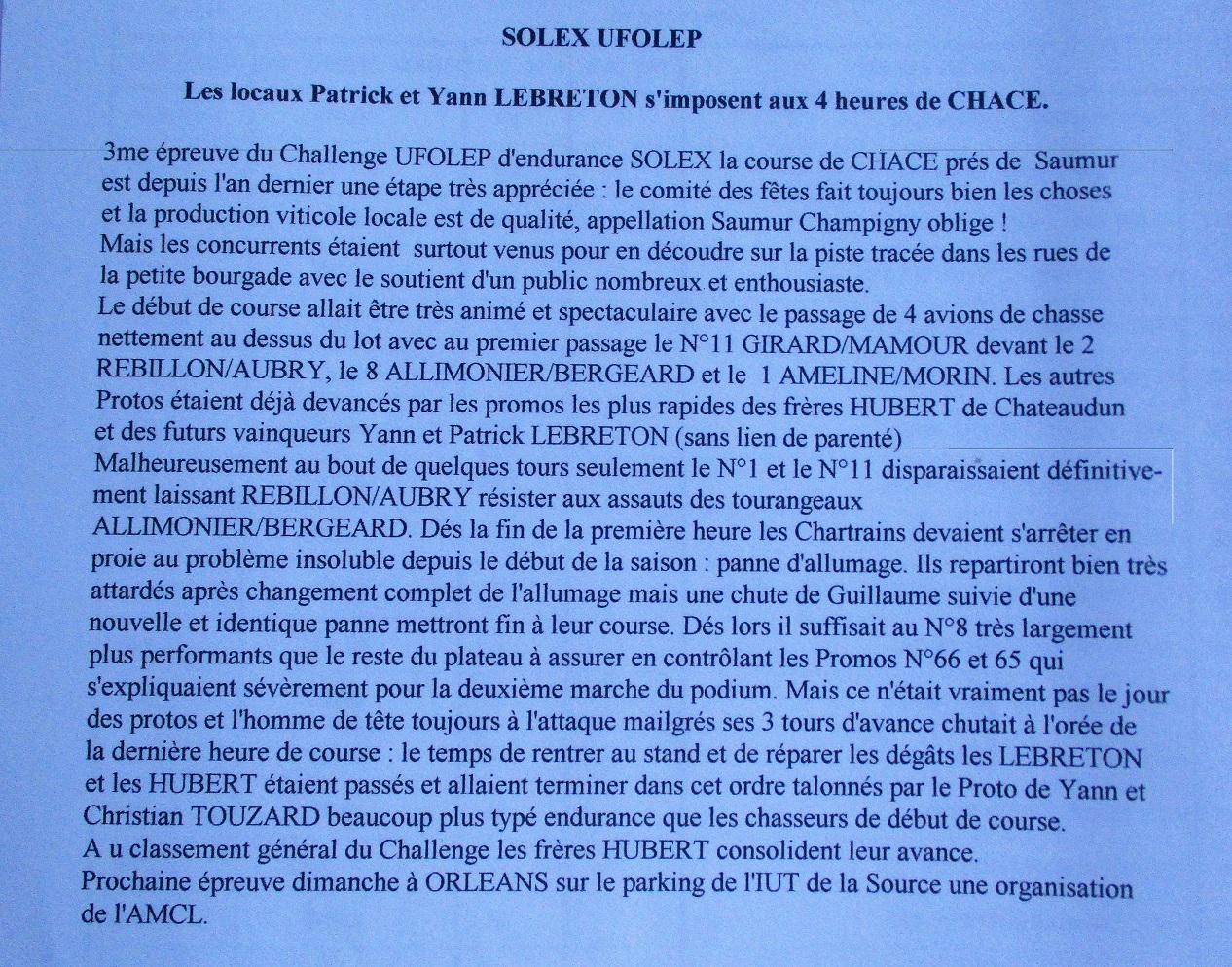 Je précise même que nous aurions pu avoir encore plus de courses car des comités des fêtes le désiraient